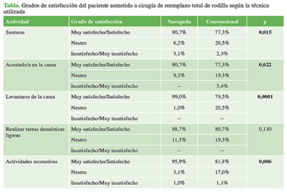 rodilla asistido por navegación o con técnicas convencionales, realizado por el