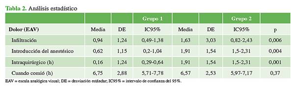 procedimiento. No hubo diferencias significativas en la comodidad o el posible
