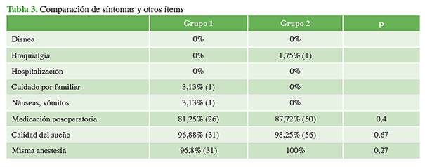 desarrollo de síntomas intra- o posoperatorios entre ambos grupos. La