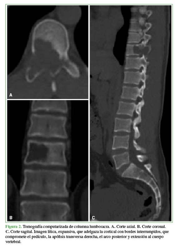óseo aneurismático en la columna torácica, de comportamiento agresivo, que