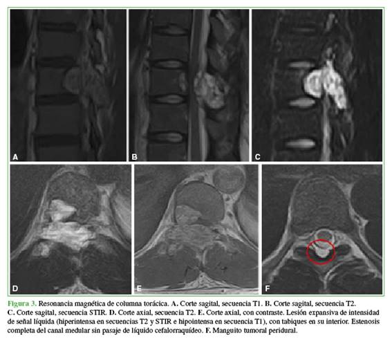 resonancia magnética de columna torácica, se identificó la misma lesión