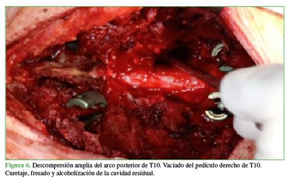 cortical, que comprometía el pedículo, la apófisis transversa, el arco