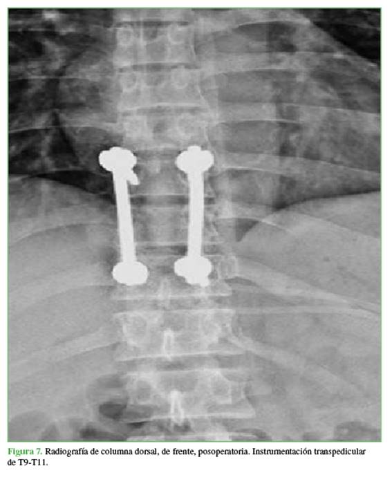 posterior a predominio derecho y el cuerpo de T10 (<50%) (Figura 2).