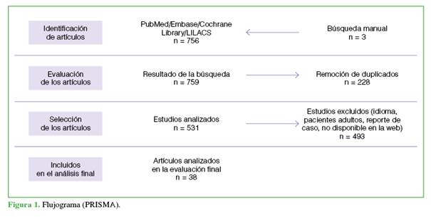 De 756 artículos preseleccionados, 38 fueron incluidos en la evaluación final.