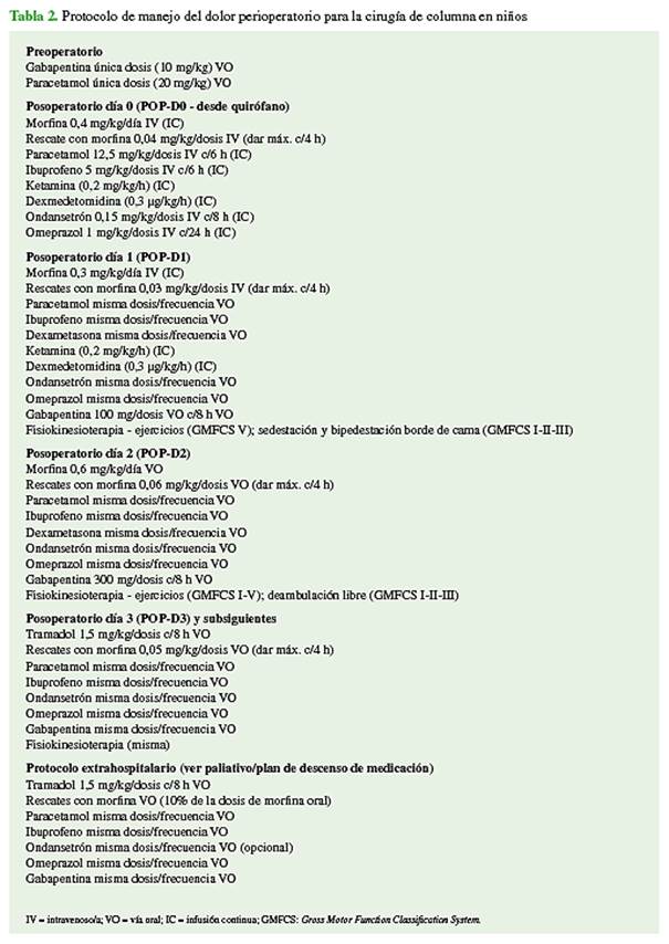 Multimodal Perioperative Pharmacological Protocol in Pediatric Spine