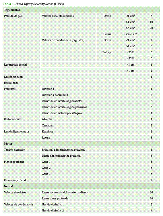 individualizado. La gravedad fue evaluada con el Hand Injury Severity Score. Resultados: