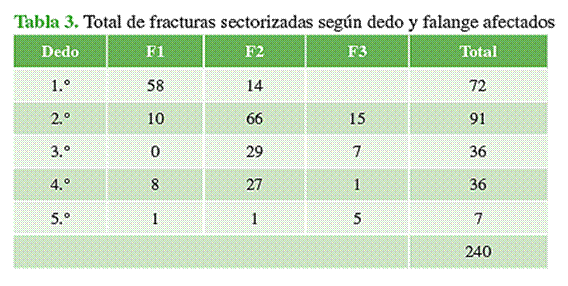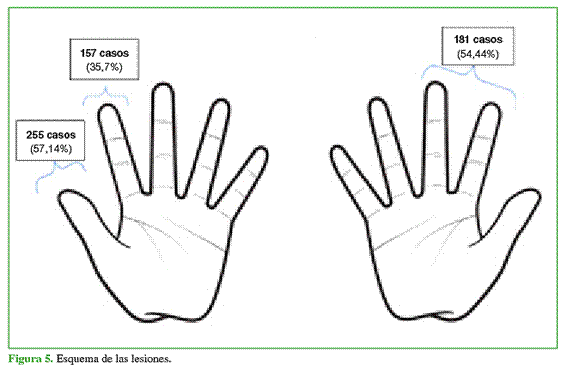 que se desprende que las lesiones más frecuentes afectan a los dedos, en