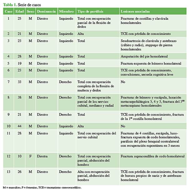(12 hombres) con lesión traumática del plexo braquial, 5 con parálisis totales