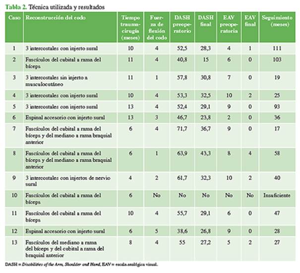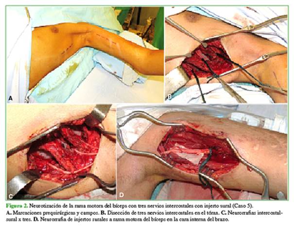 codo fueron: 3 nervios intercostales con injerto sural a nervio musculocutáneo