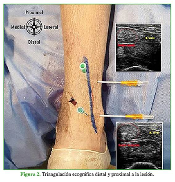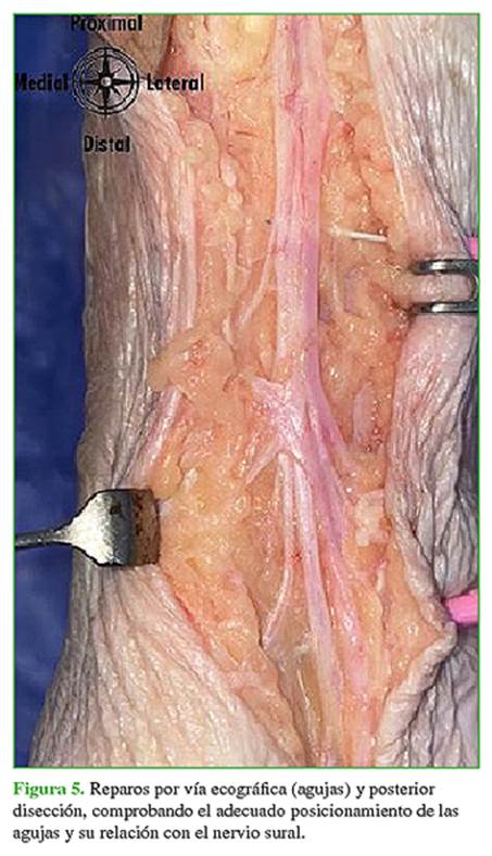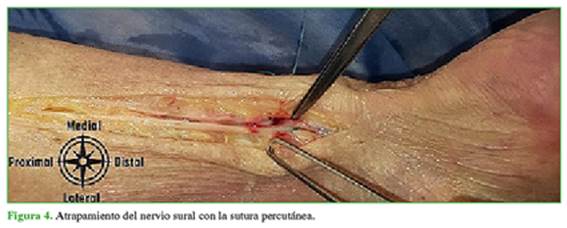 nervio sural mediante ecografía. Se efectuó la reparación percutánea de las