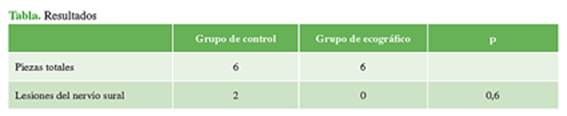 del nervio sural. En el grupo de control, se observaron dos lesiones del nervio