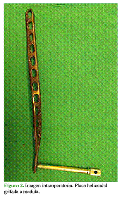 placa helicoidal por abordaje medial. Se obtuvieron buenos resultados clínicos