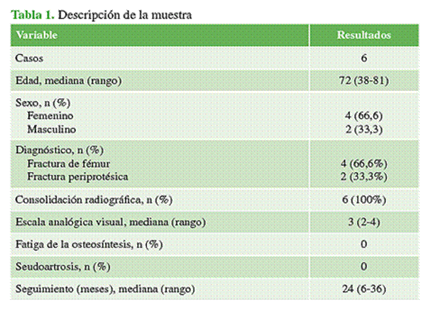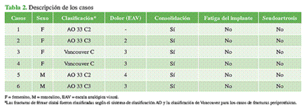 Se describieron seis casos de osteosíntesis en el fémur distal con