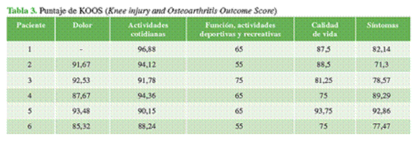 funcionales satisfactorios, en un seguimiento a corto plazo (Tabla 3).