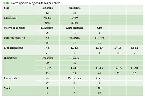lumbar dinámicas. Se analizan la prevalencia del sexo, la edad, la