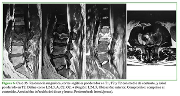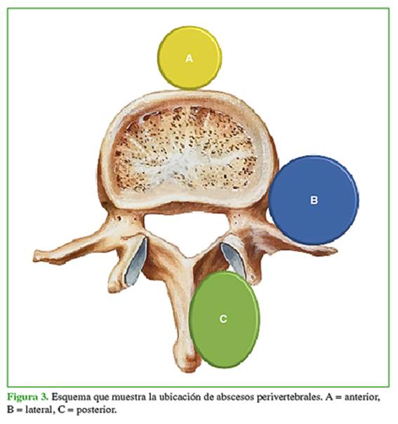 ubicación, compromiso, asociación y perivertebral, absceso extravertebral