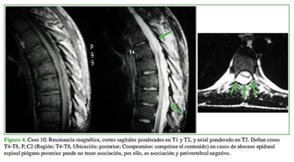 Palabras clave: Infección; absceso epidural;