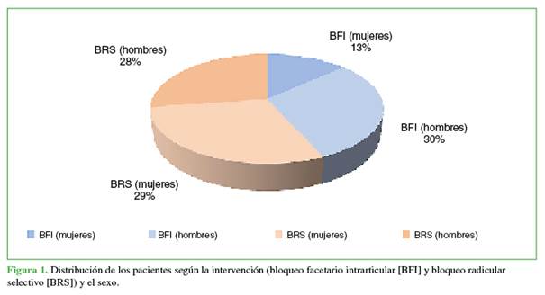 con los bloqueos facetarios intrarticulares y el sexo y la edad, y entre la