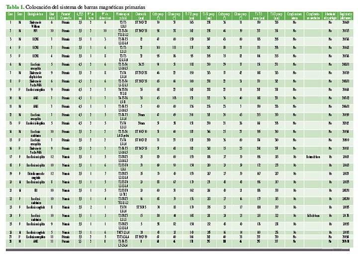 tratados con barras magnéticas en escoliosis de comienzo temprano. Materiales y
