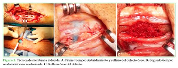 membrana inducida, descrita por Masquelet, utilizando cemento ortopédico con