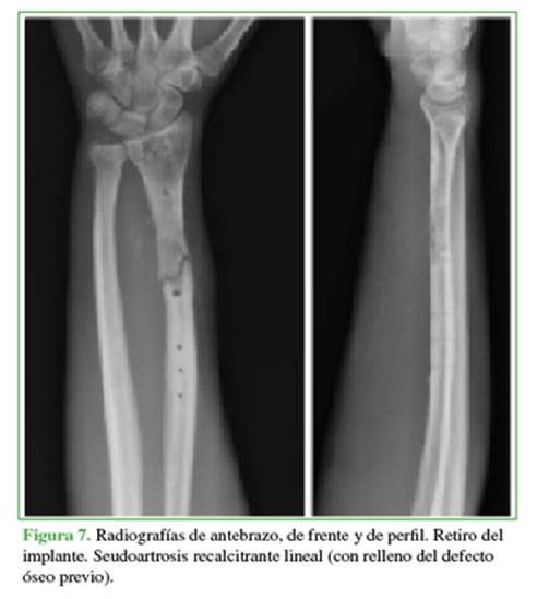 seudoartrosis recalcitrante de radio, se realizó una nueva intervención con