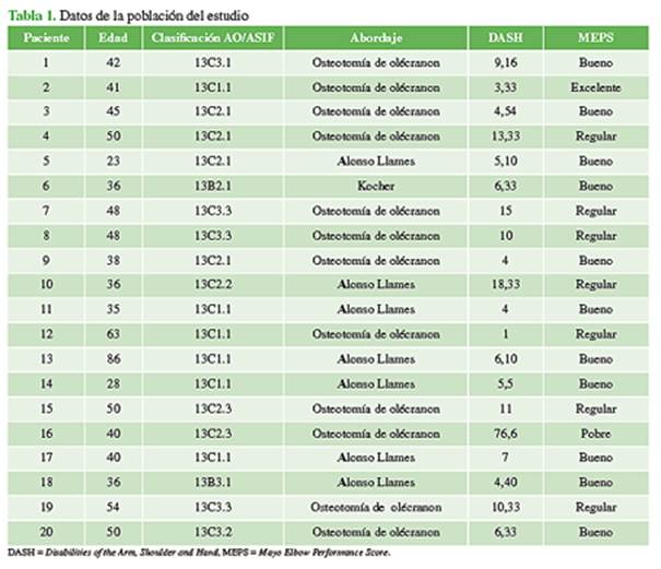 tratados con osteotomía de olécranon que inferimos tiene que ver con la