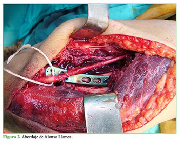 de la faceta articular del húmero distal, si bien el abordaje de Alonso Llames