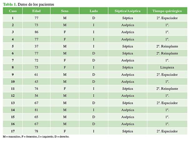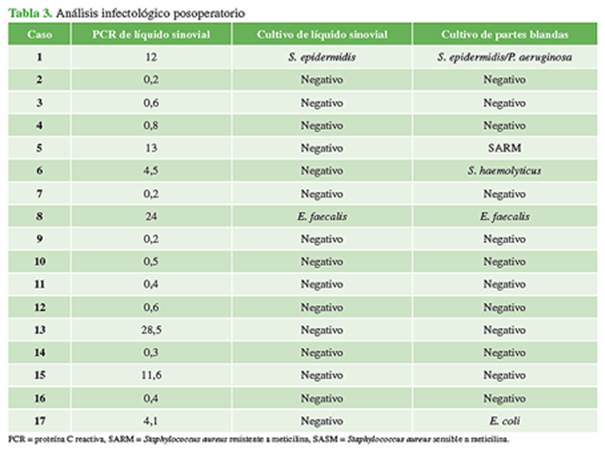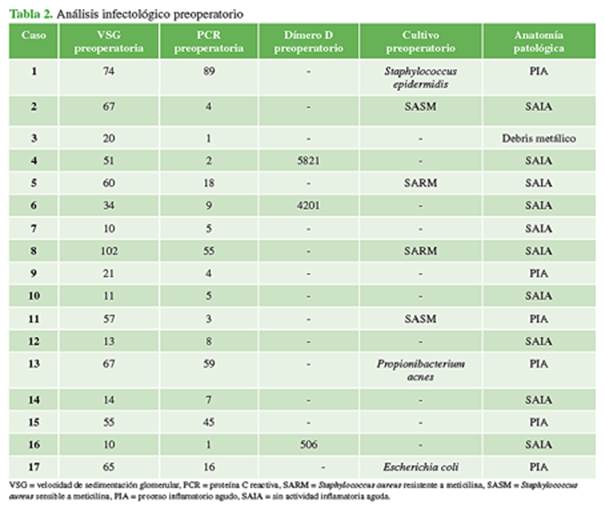 cirugía en pacientes con infección periprotésica y cultivos negativos.