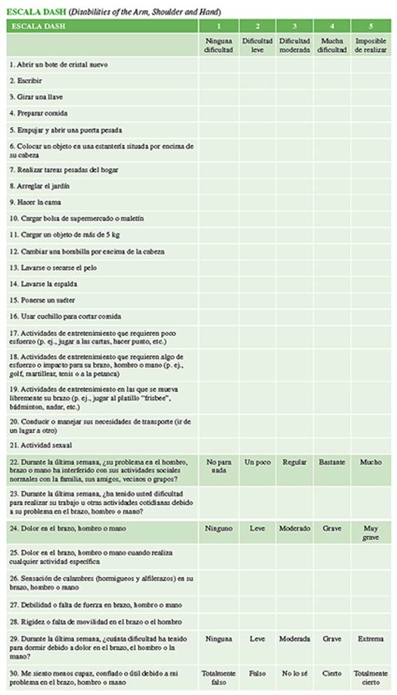 outcome measure study with the Disabilities of Arm, Shoulder and Hand (DASH)