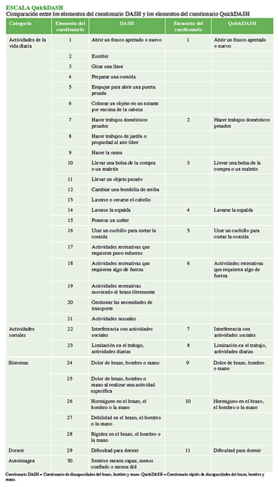 Shoulder, and Hand Questionnaire (DASH) and its short version (QuickDASH),