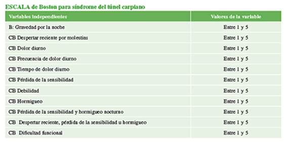 Asoc Esp Espec Med Trab [online]. 2017;26(1):31-8. Disponible en: https://scielo.isciii.es/scielo.php?script=sci_arttext&pid=S113262552017000100004#:~:text=El%20cuestionario%20de%20Boston%20incluye,s%C3%ADndrome%20del%20t%C3%BAnel%20carpiano%20laboral