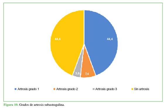 grado de artrosis subastragalina y calcaneocuboidea. Se determinó el puntaje de