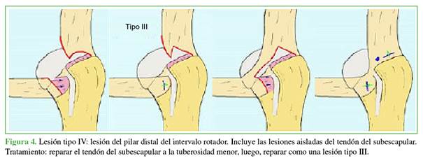 del tendón del subescapular. El manejo de las lesiones tipo IV consiste en