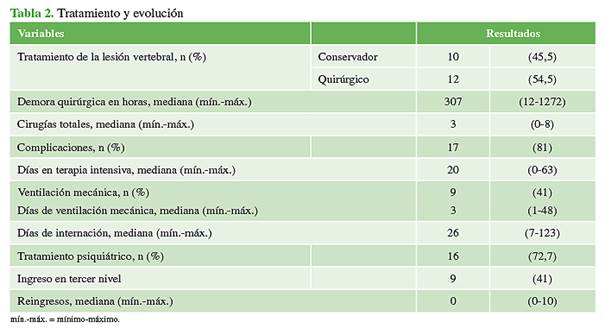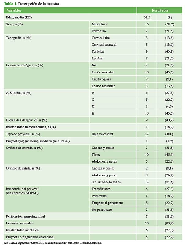 pacientes que sufrieron lesiones vertebrales por arma de fuego en el contexto