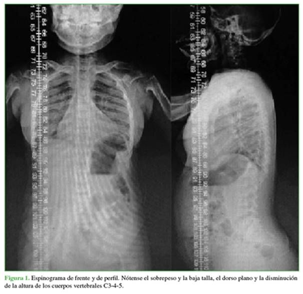 Las manifestaciones espinales típicas son: inestabilidad atlantoaxoidea (con