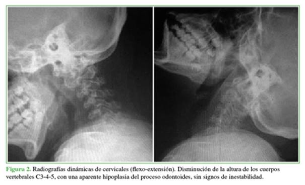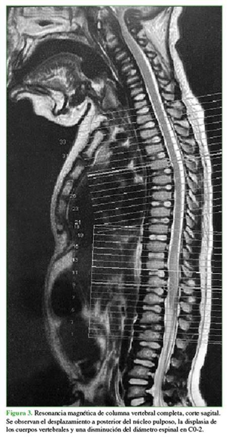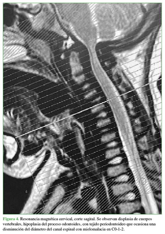 hipoplasia odontoidea o sin ella), cifosis toracolumbar, escoliosis, conducto