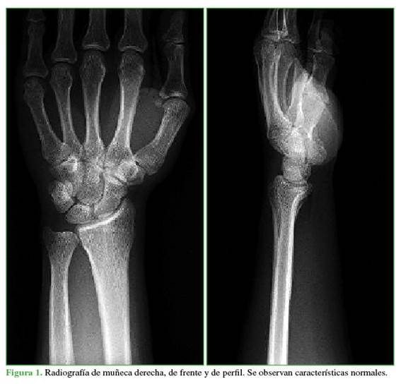 radiografía de muñeca (Figura 1) no muestra alteraciones. En la ecografía de