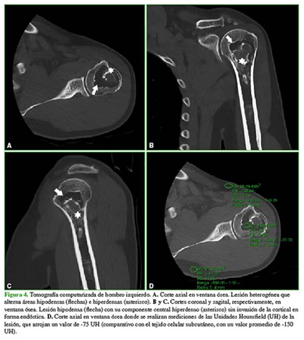 hombro izquierdo (Figura 3), se visualiza una tumoración en la región