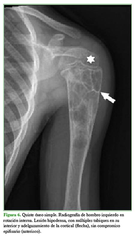 (Figura 5), quiste óseo simple o aneurismático (Figura 6), lesiones condrales