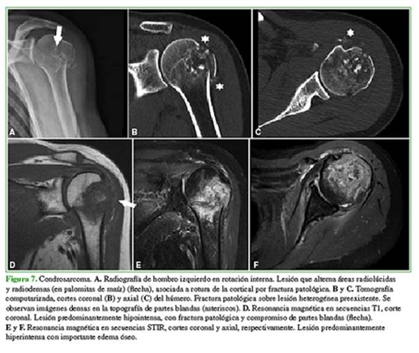 (encondroma, condrosarcoma) (Figura 7), infarto óseo antiguo, necrosis