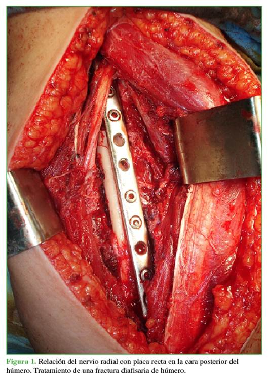 intraquirúrgica del nervio radial durante la osteosíntesis de la diáfisis y el