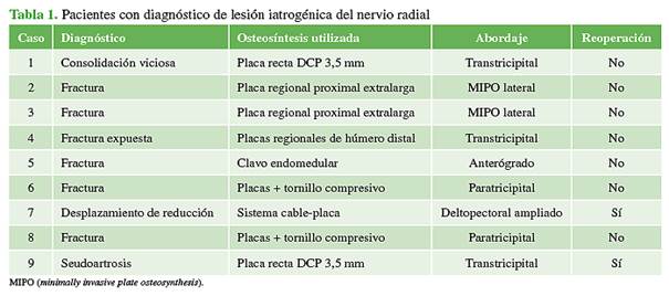el enfoque de la lesión iatrogénica del nervio radial sea también muy disímil.