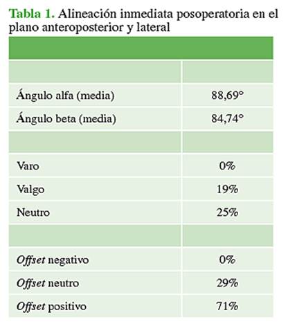 los parámetros de alineación de la prótesis. Materiales y Métodos: La población estaba formada por 31 pacientes.