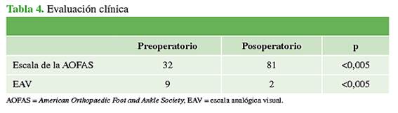 clínica fueron: la escala analógica visual y la escala de la AOFAS, y el