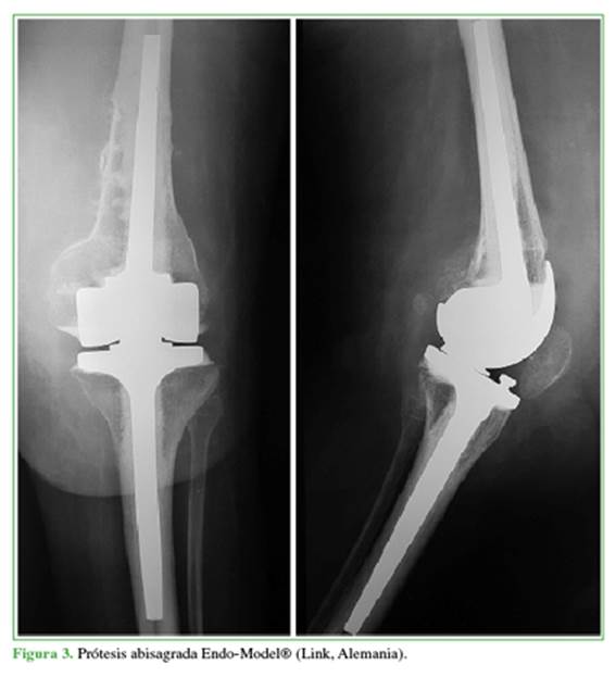 artroplastia total de rodilla; bisagra rotatoria.