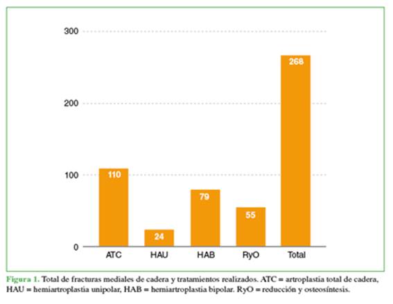 identificaron 268 fracturas mediales de cadera y 110 ATC en 108 pacientes