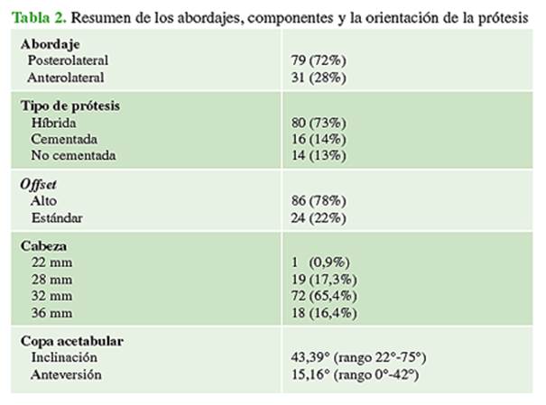 acetabulares y se registraron las comorbilidades. Resultados: El 72% de las cirugías fueron por vía posterolateral.
