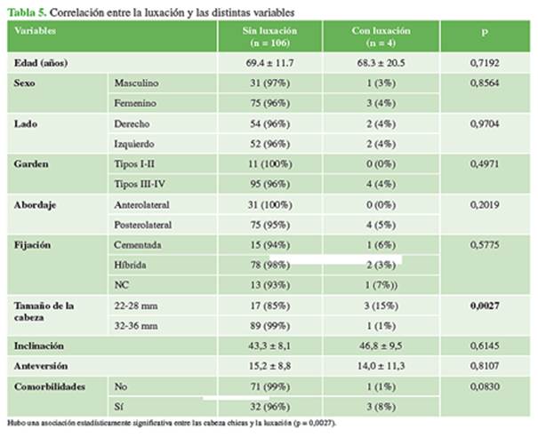 de este estudio fue conocer nuestra incidencia de luxación en pacientes