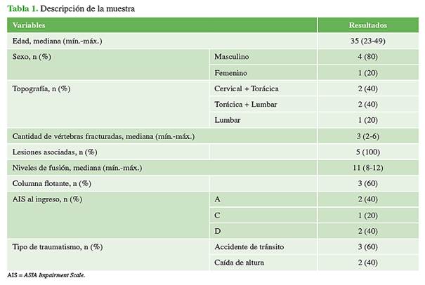 pacientes (1 mujer y 4 hombres) con dos fracturas vertebrales inestables simultáneas,