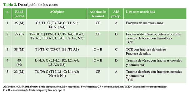 asociación de múltiples fracturas vertebrales inestables simultáneas. Rev Asoc Argent Ortop Traumatol